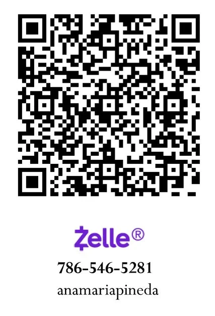 Save your spot pay now through Zelle or text 786-546-5281 or email info@anamariapineda.com: